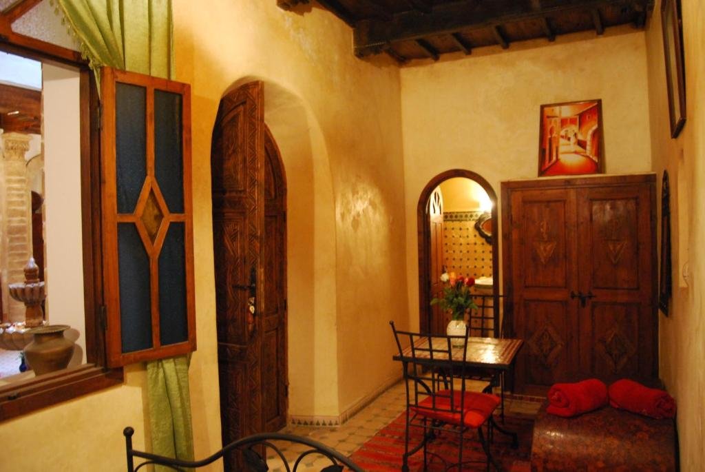 Les chambres allient éléments d’origine et confort moderne, toutes avec salle de bains privative et certaines avec cheminée décorative. Le riad dispose d’une terrasse, d’un salon confortable et d’un restaurant servant une cuisine marocaine traditionnelle ainsi que des plats européens. Le petit-déjeuner peut être savouré sur la terrasse.