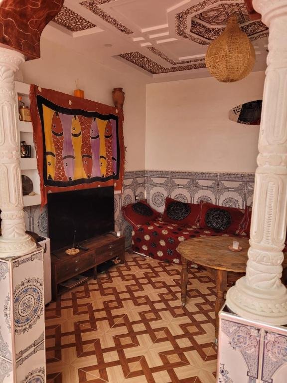 Dès votre arrivée, vous serez séduit par l’ambiance chaleureuse et accueillante de ce logement. Les espaces communs invitent à la détente et aux échanges entre voyageurs : salon confortable, terrasse ensoleillée et patio intérieur offrent des lieux idéaux pour partager vos expériences ou simplement profiter du climat doux de la côte atlantique. La décoration combine éléments marocains traditionnels et touches modernes, créant un environnement cosy et inspirant.