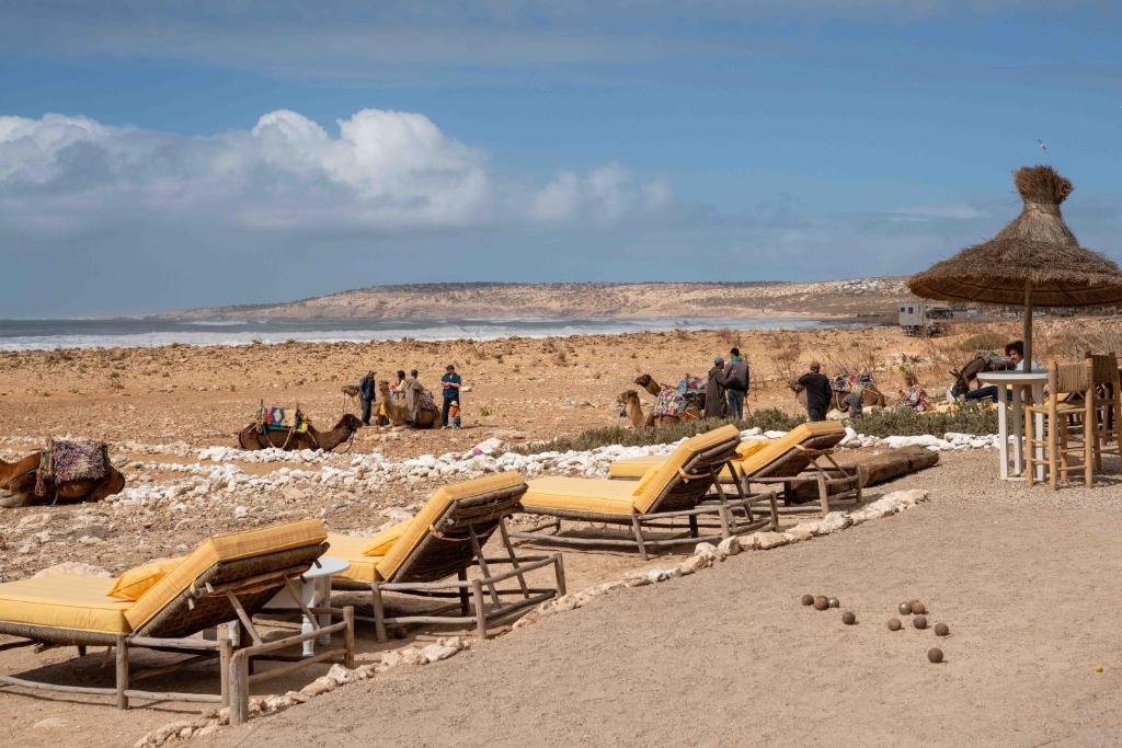 L’établissement constitue également un point de départ idéal pour de nombreuses activités nature : balades à dos de dromadaire ou à cheval, randonnées sur les plages désertes, surf, moments de méditation ou simplement détente au soleil. Ce lieu est souvent choisi par les voyageurs en quête d’inspiration, mais aussi par les couples souhaitant vivre un séjour romantique et paisible.