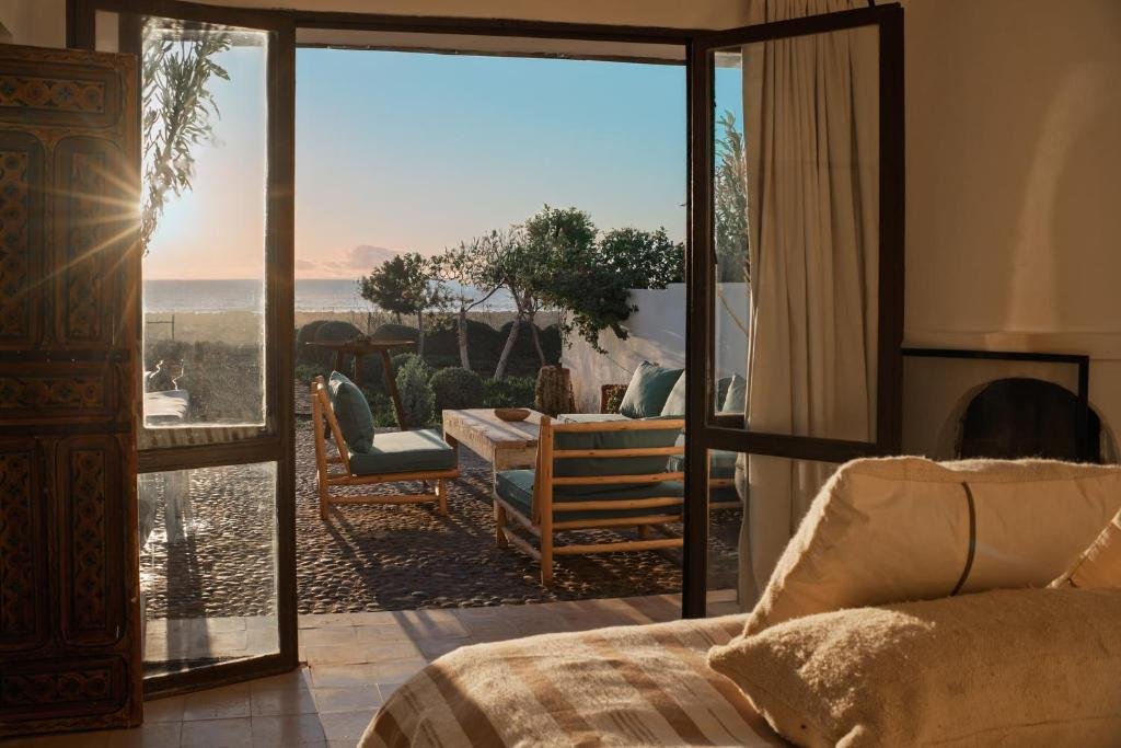 Les hébergements, décorés avec goût, offrent un confort simple mais agréable. Les chambres bénéficient d’une décoration artisanale, de touches marocaines traditionnelles et de meubles en bois naturel. On y retrouve un charme authentique, loin du bruit et du stress des grandes villes. Certains logements offrent une vue magnifique sur les dunes ou l’océan, permettant de profiter chaque jour de couchers de soleil spectaculaires.