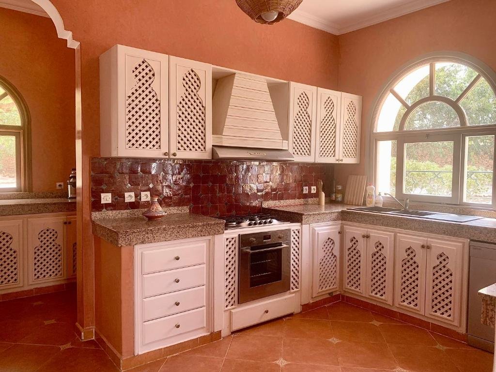 La villa comprend 5 chambres climatisées, décorées avec soin, ainsi que 5 salles de bains modernes équipées de douches et de sèche-cheveux. Les espaces intérieurs sont spacieux et lumineux, avec un salon confortable, et une cuisine entièrement équipée incluant réfrigérateur, machine à café et équipements modernes, assurant un séjour pratique et raffiné.