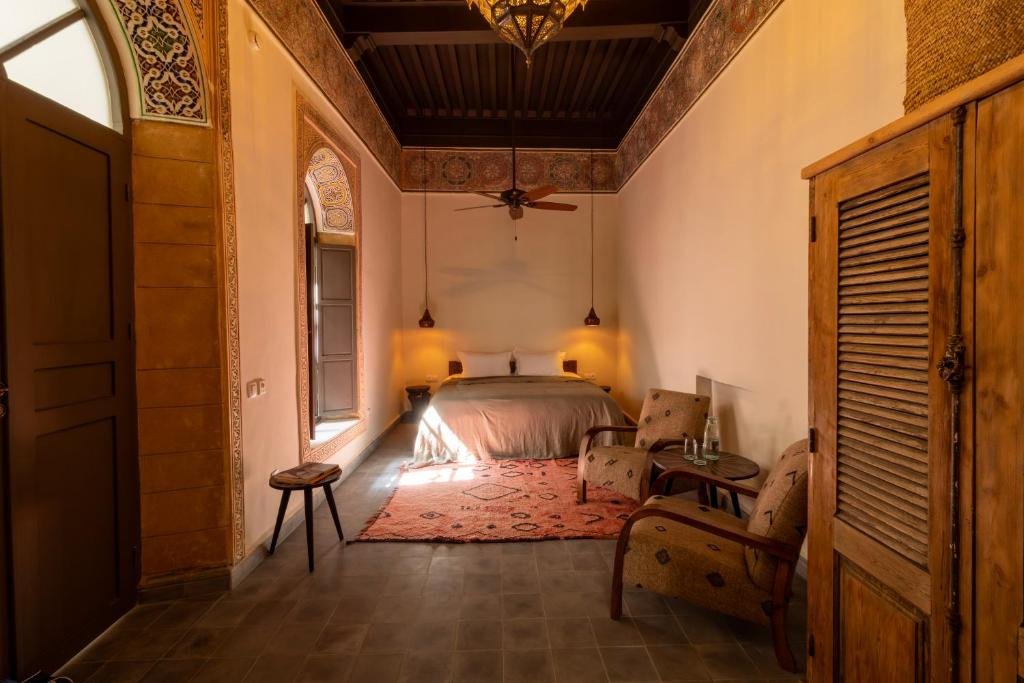 Les chambres sont élégantes et parfaitement équipées pour garantir un confort optimal. Chaque hébergement dispose d’une armoire de rangement, d’une salle de bains privative moderne avec douche, articles de toilette offerts et sèche-cheveux. Du linge de lit et des serviettes sont fournis, afin d’assurer un séjour agréable et sans contrainte. La décoration raffinée, inspirée de l’art de vivre souiri, crée une atmosphère chaleureuse et parfaitement adaptée aux séjours en couple.
