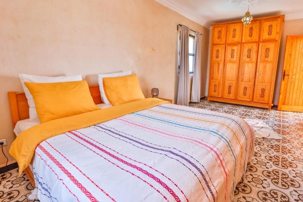 La villa dispose de 5 chambres confortables et décorées avec goût, offrant un espace idéal pour accueillir familles ou groupes d’amis. Elle comprend 2 salles de bains équipées d’un bidet, un salon lumineux et une cuisine entièrement équipée avec réfrigérateur et lave-vaisselle. Une télévision à écran plat est mise à disposition, et le linge de lit ainsi que les serviettes sont inclus. La connexion Wi-Fi gratuite permet de rester connecté tout au long de votre séjour à Essaouira.