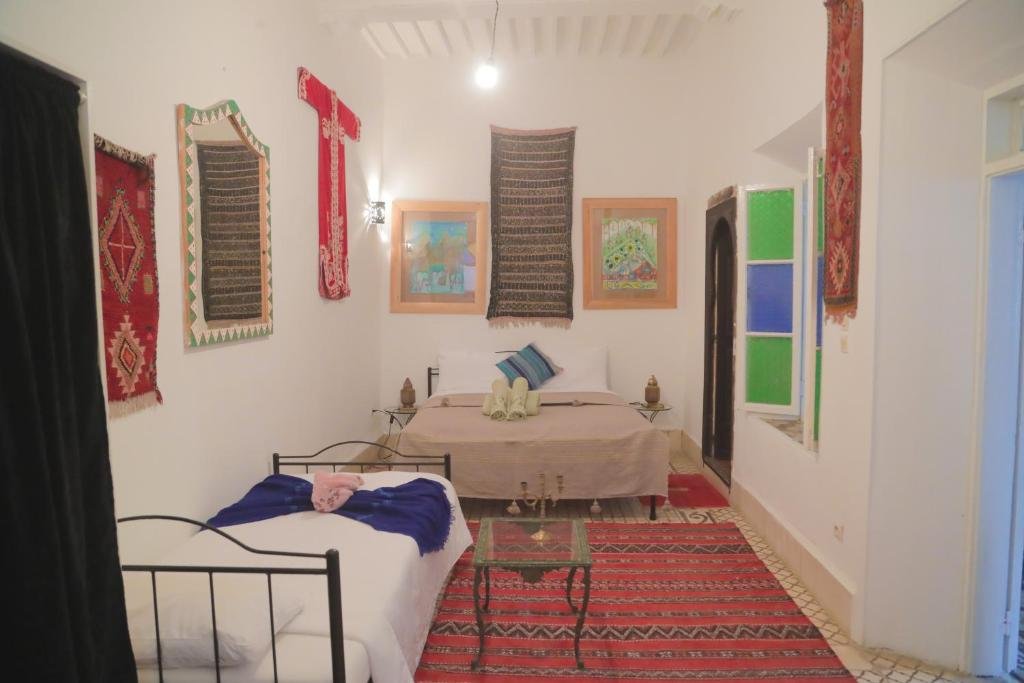 Le Riad Dar Afram propose des chambres spacieuses et lumineuses, équipées de literie confortable, de rangements pratiques et d’une décoration raffinée. Certaines chambres disposent de terrasses privées ou offrent des vues sur le patio, idéales pour profiter du climat doux et ensoleillé d’Essaouira. Les salles de bains modernes sont dotées de toutes les commodités nécessaires pour un séjour agréable.