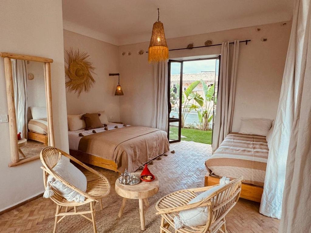 Le riad propose des hébergements variés, allant des chambres traditionnelles aux bungalows indépendants, tous décorés dans un style marocain authentique. Chaque logement offre une ambiance unique, caractérisée par des couleurs chaleureuses, des matériaux naturels et des éléments artisanaux. L’établissement veille à maintenir une atmosphère reposante, parfaite pour se ressourcer tout en bénéficiant d’un confort moderne.