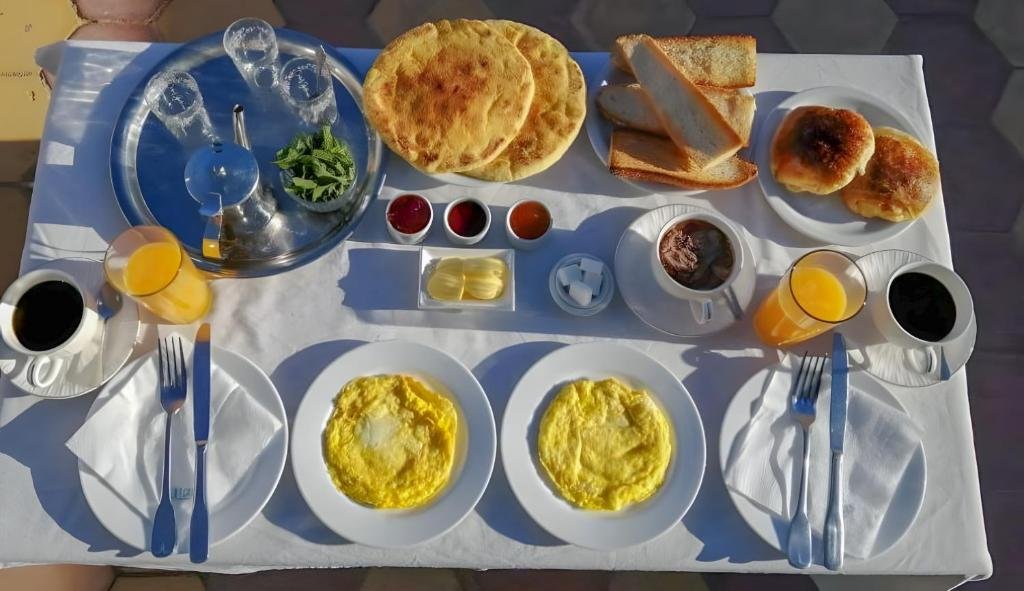 Les chambres, construites autour du patio commun, présentent une décoration typiquement marocaine et disposent chacune d’une salle de bains privative.