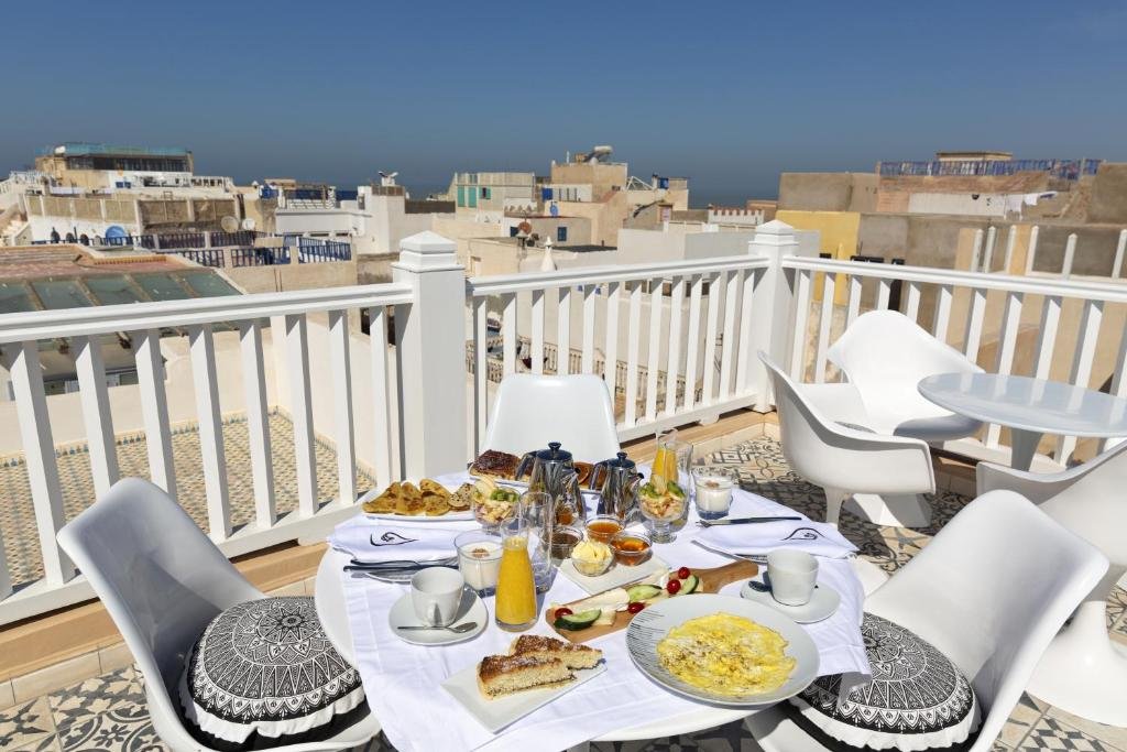 Chaque matin, l’hôtel propose un petit-déjeuner varié, composé de produits frais, spécialités marocaines et options internationales. Ce repas est servi dans un cadre agréable, parfait pour démarrer la journée avant une balade sur la plage ou une visite de la Médina.