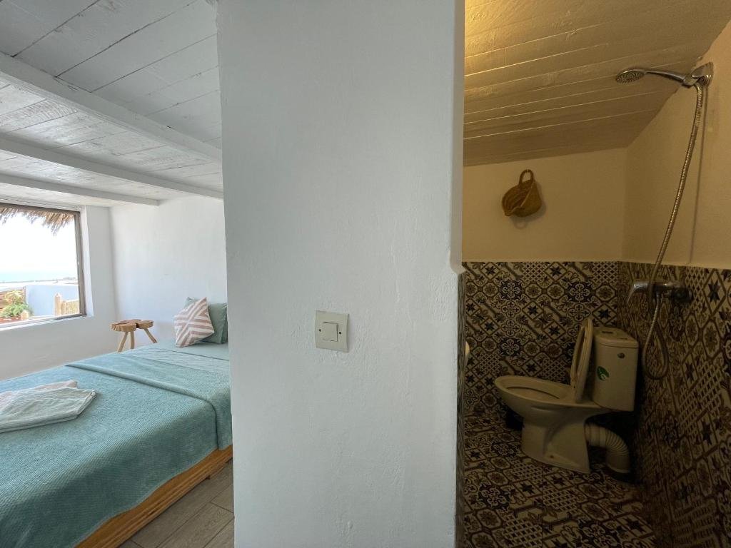 L’hébergement propose des chambres confortables, pensées pour offrir repos et tranquillité. Elles disposent d’une literie agréable, d’un décor apaisant et de rangements pratiques pour un séjour sans contrainte. Les espaces communs – salon, coin détente et terrasse – invitent à partager des moments entre voyageurs, à échanger autour des sessions de surf ou simplement à profiter du soleil dans une ambiance décontractée.