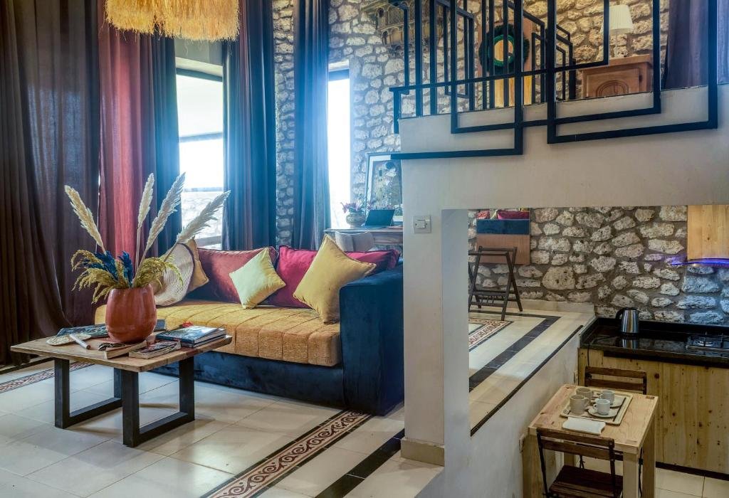 La décoration est simple, chaleureuse et tournée vers le naturel, créant une atmosphère reposante après une journée de plage, de randonnée ou de visite de la médina d’Essaouira.