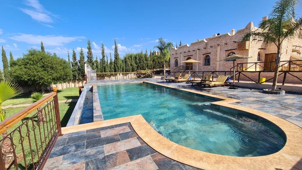 L’établissement propose une piscine extérieure entourée de transats, idéale pour profiter du soleil et du climat doux d’Essaouira. La terrasse panoramique offre une magnifique vue sur les montagnes environnantes, un décor naturel qui ajoute une touche d’évasion à votre séjour.