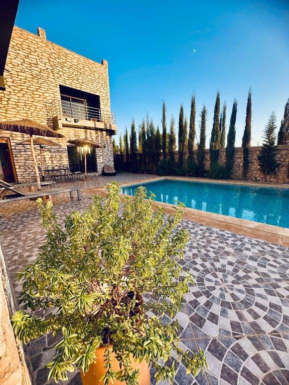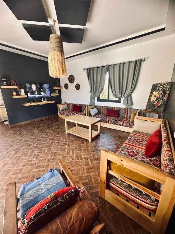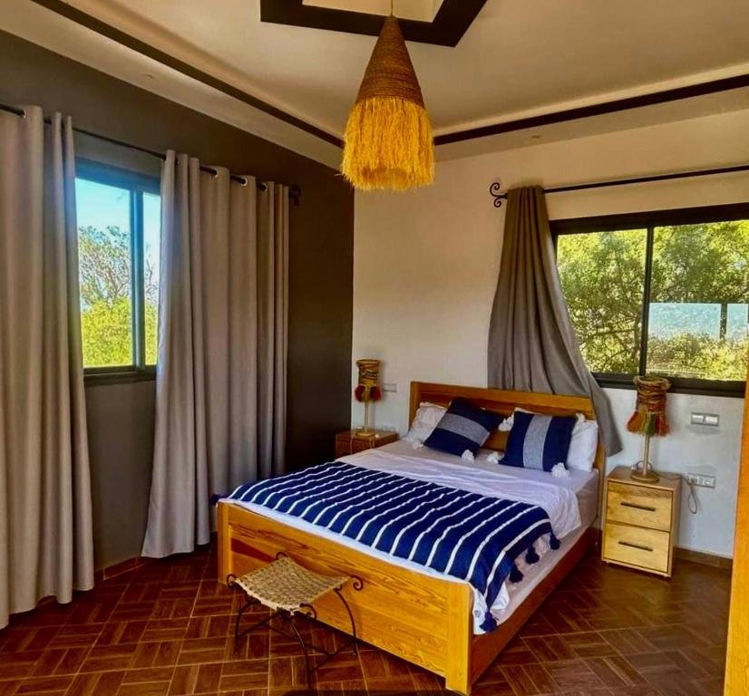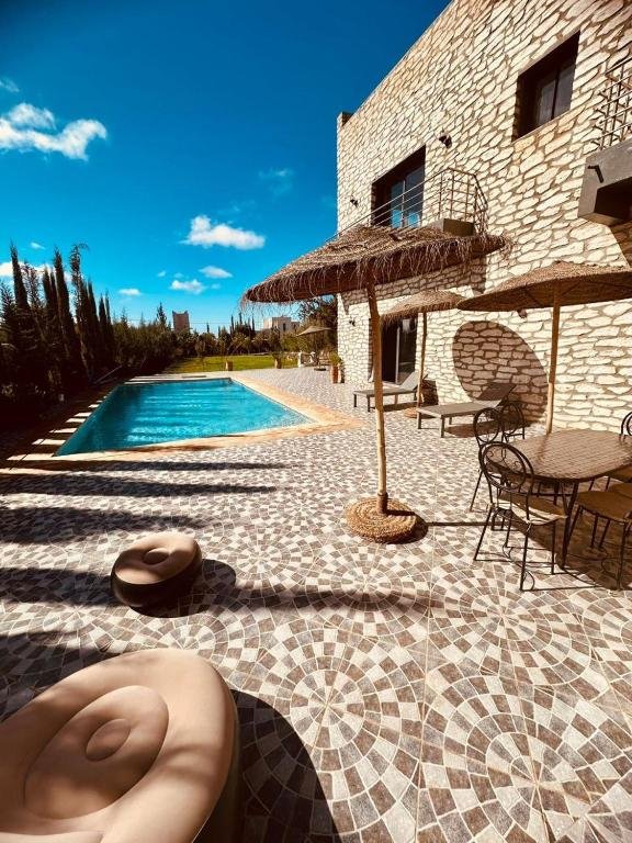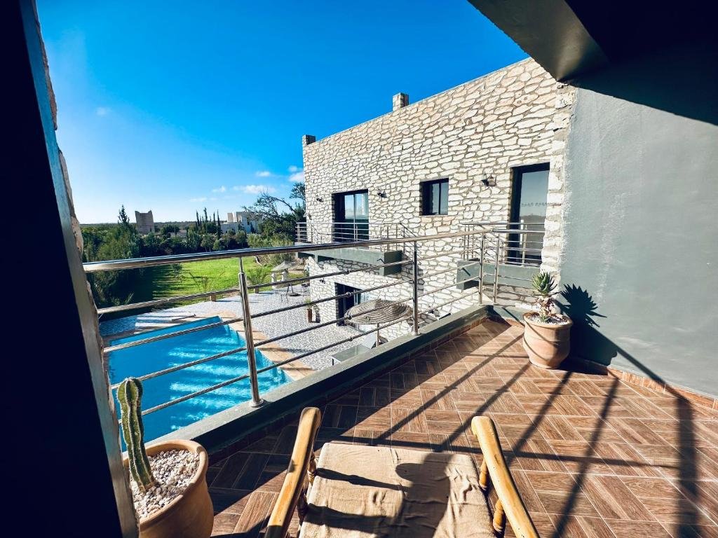 Située à seulement 14 km du Golf de Mogador et à quelques minutes des plus belles plages d’Essaouira, Villa Azure vous accueille dans un cadre paisible où confort, charme et hospitalité marocaine se rencontrent. Cette maison d’hôtes, idéale pour les couples, les familles et les voyageurs en quête de tranquillité, offre une atmosphère chaleureuse, une piscine extérieure et de superbes vues dégagées sur le jardin et la campagne environnante.