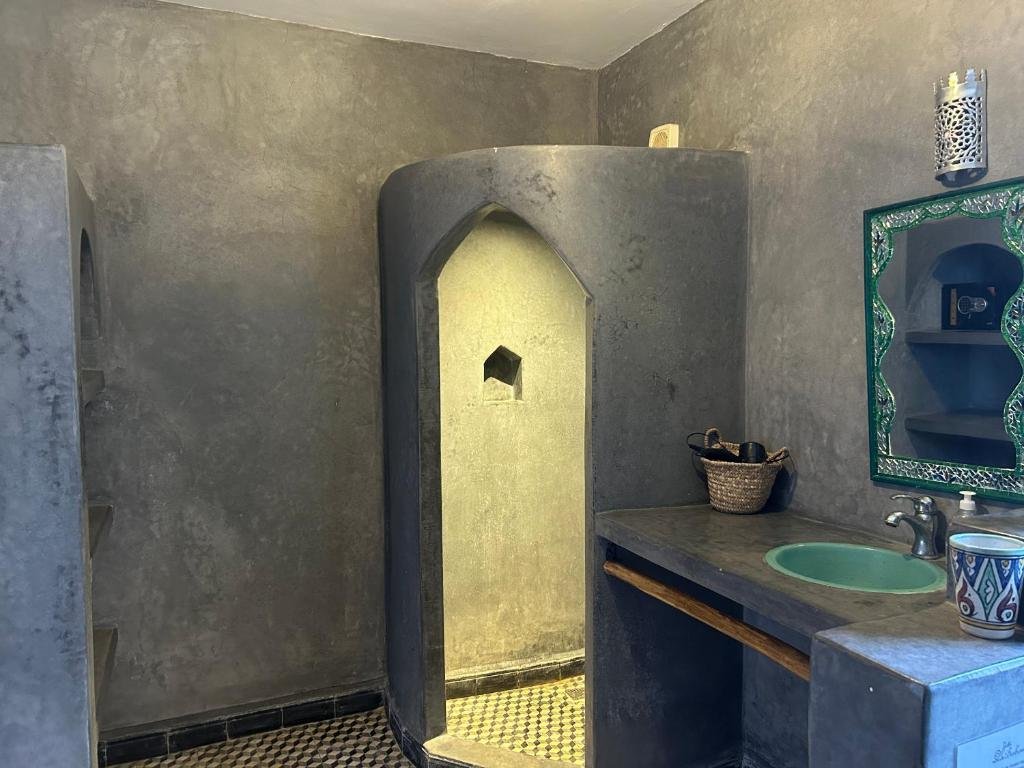 Le salon commun constitue le cœur de la villa, offrant un espace convivial pour se détendre, partager des moments en famille ou entre amis. Il est équipé d’une télévision à écran plat, parfait pour se divertir après une journée en extérieur. La cuisine entièrement équipée comprend un réfrigérateur, un lave-vaisselle et tous les ustensiles nécessaires pour préparer vos repas, que vous souhaitiez concocter des plats marocains traditionnels ou simplement prendre un petit-déjeuner tranquille avant une journée d’aventures.