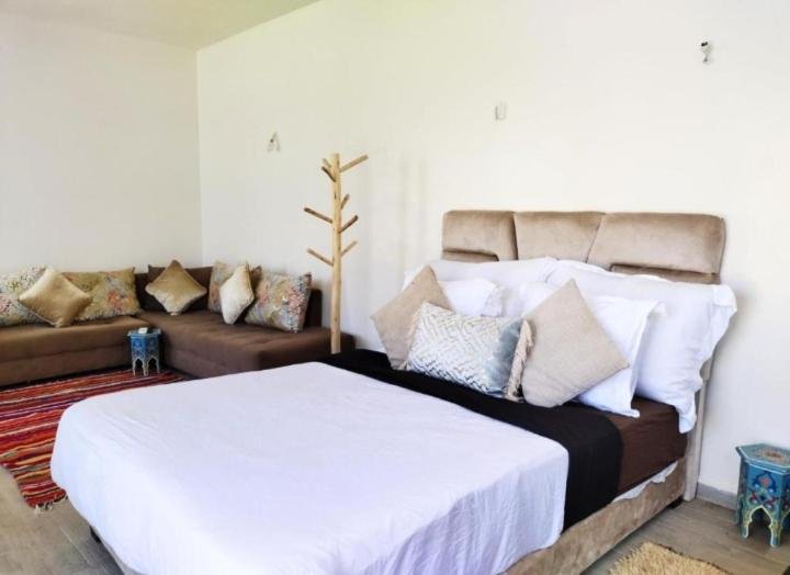 Située à Essaouira, à seulement 10 km du Golf de Mogador, la Villa Bouzama est un hébergement idéal pour tous ceux qui recherchent un séjour alliant confort, tranquillité et cadre naturel. Parfaite pour les familles, les groupes d’amis ou les couples, cette villa propose un espace charmant et accueillant avec des installations modernes pour rendre votre séjour inoubliable. L’aéroport le plus proche, Aéroport Essaouira – Mogador, est accessible en seulement 7 km, avec des services de navette disponibles pour faciliter votre arrivée et votre départ.