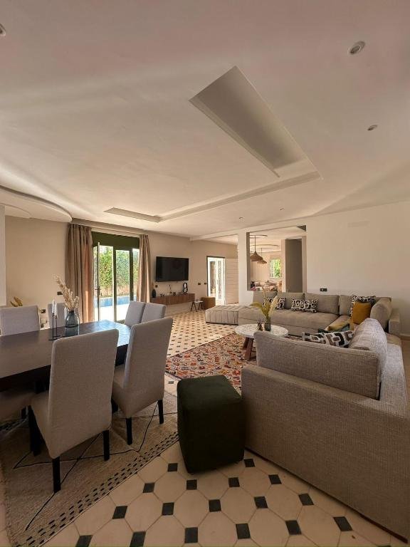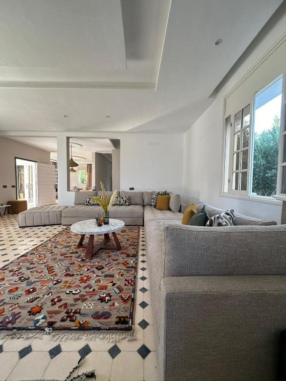 La villa dispose de 3 chambres élégamment aménagées, offrant tout le confort nécessaire pour un séjour agréable. Les chambres sont lumineuses et climatisées, et donnent accès à 4 salles de bains modernes équipées de douches. Chaque espace est conçu pour assurer intimité et confort, avec des serviettes et du linge de lit fournis pour tous les invités. Le salon spacieux constitue un lieu idéal pour se détendre, regarder la télévision à écran plat ou partager des moments conviviaux après une journée d’exploration à Essaouira.