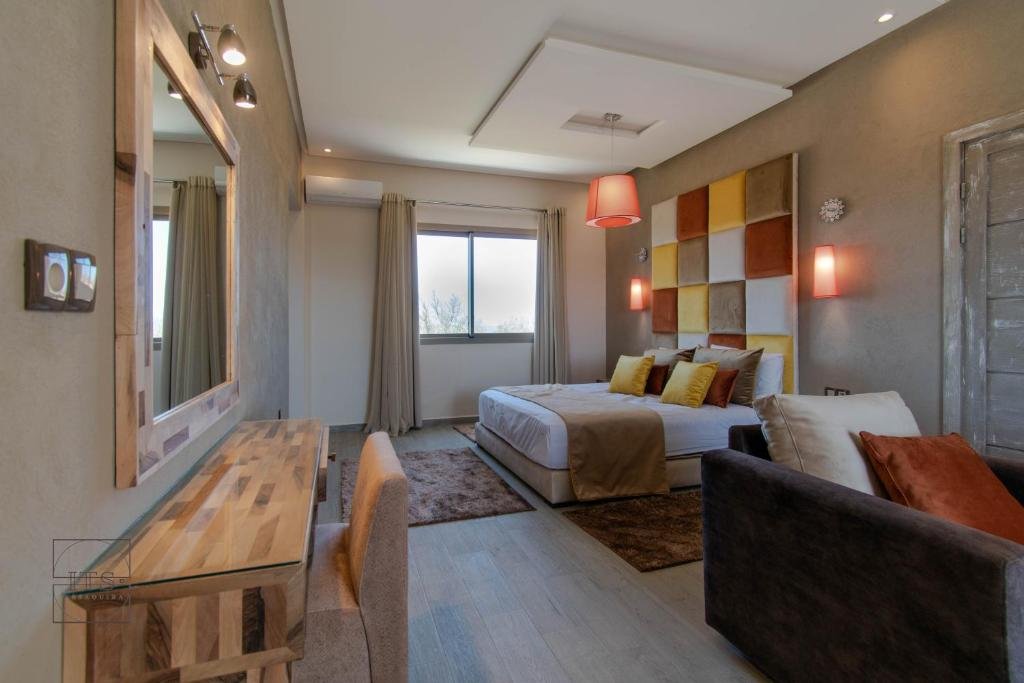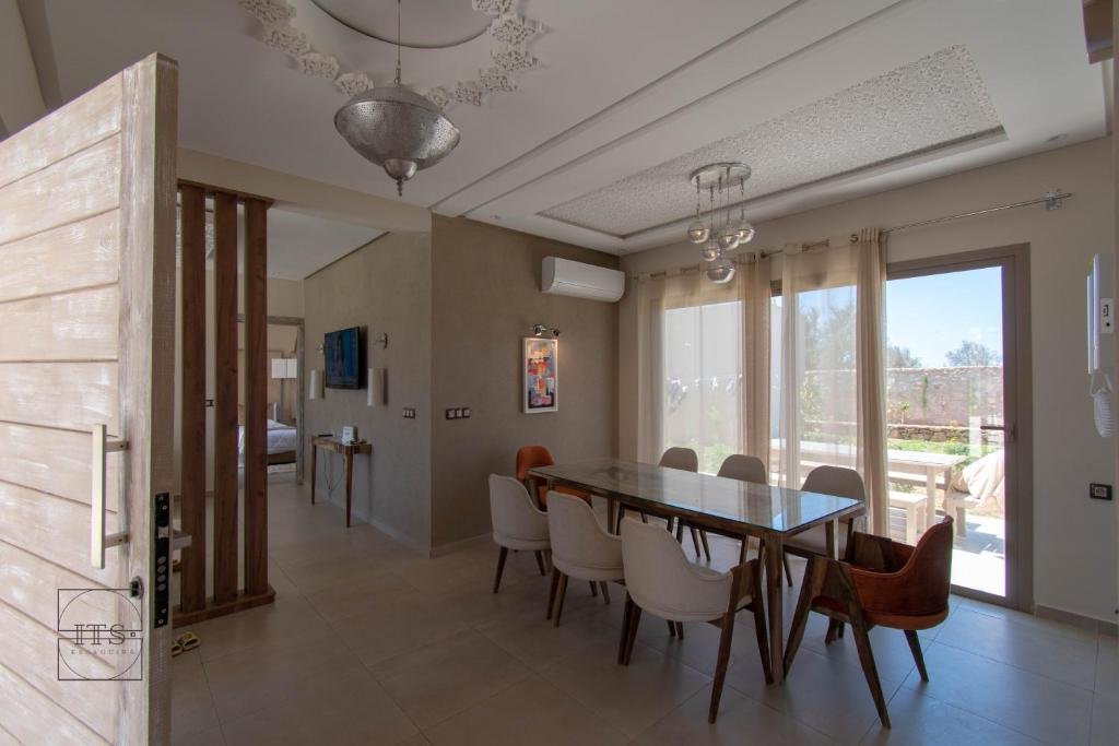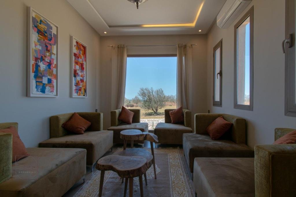 La villa se situe à 21 km du Golf de Mogador, ce qui en fait un hébergement idéal pour les amateurs de golf. L’aéroport Essaouira-Mogador est à seulement 26 km, avec un service de navette aéroport payant disponible pour un transfert simple et confortable.