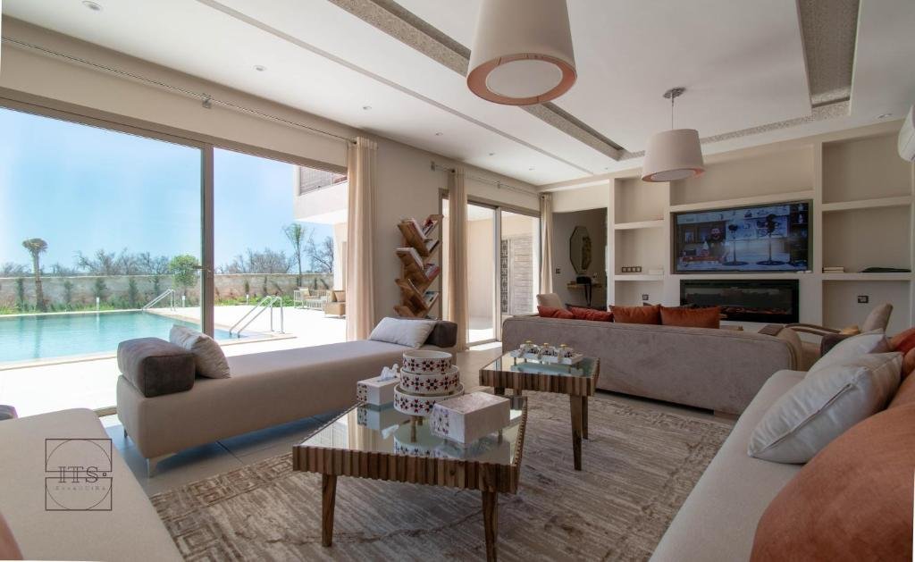 Située à Essaouira, la Villa KAWACH est une superbe villa Essaouira offrant un cadre idyllique pour un séjour Essaouira alliant détente, confort et activités. Cet hébergement avec piscine Essaouira dispose d’une piscine extérieure privée, d’un jardin verdoyant et d’une terrasse offrant une vue agréable sur la piscine, idéale pour se relaxer au soleil ou partager des moments conviviaux en famille ou entre amis.