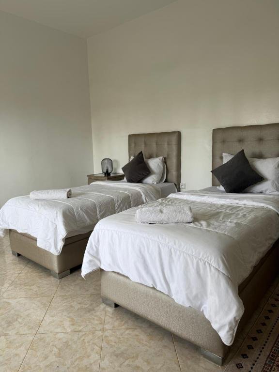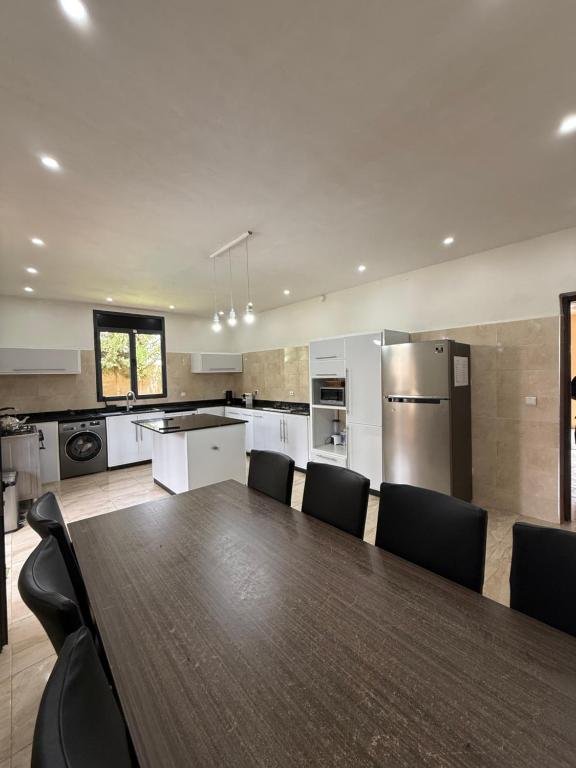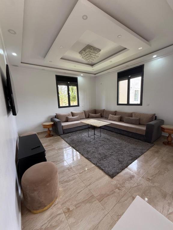La villa comprend 5 chambres climatisées, soigneusement aménagées pour offrir un maximum de confort et de tranquillité. Les chambres sont dotées de lits confortables, de linge de maison et de serviettes, et donnent accès aux 4 salles de bains équipées de douche et bidet. Le salon lumineux et spacieux constitue un lieu idéal pour se détendre, regarder la télévision ou partager des moments en famille après une journée d’activités. La villa dispose également d’une cuisine entièrement équipée, comprenant un réfrigérateur, une machine à café et tous les ustensiles nécessaires pour préparer vos repas dans le confort de votre hébergement.