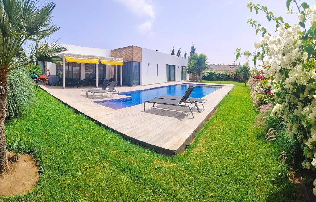 Cette villa de luxe Essaouira dispose d’une piscine privée et d’un jardin spacieux, parfait pour se détendre au soleil ou organiser des repas en plein air. La terrasse est équipée pour profiter pleinement des journées ensoleillées, tandis que le stationnement sur place est gratuit et sécurisé. Une connexion Wi-Fi gratuite est disponible dans toute la villa, offrant confort et praticité aux voyageurs.