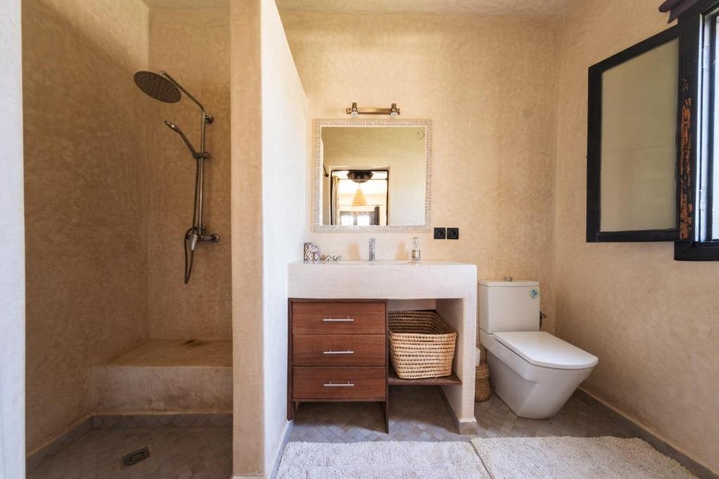 Cette villa avec piscine Essaouira dispose d’une piscine extérieure privée, d’un jardin spacieux et d’une terrasse offrant une vue relaxante sur les alentours. Elle comprend 3 chambres confortables, un salon lumineux avec télévision à écran plat et une cuisine entièrement équipée, permettant de préparer vos repas en toute autonomie. Les 3 salles de bains modernes avec douche garantissent un confort optimal pour tous les invités.