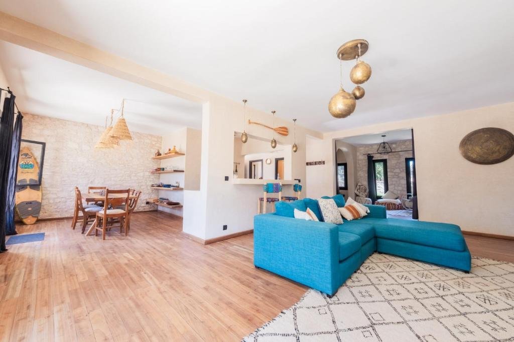 La Villa Sunset – Maison entière est une magnifique villa Essaouira située à seulement 7,9 km du Golf de Mogador, offrant un cadre idéal pour un séjour bord de mer Essaouira. Parfaite pour des vacances en famille ou entre amis, cette villa combine confort, intimité et proximité avec les attractions locales.