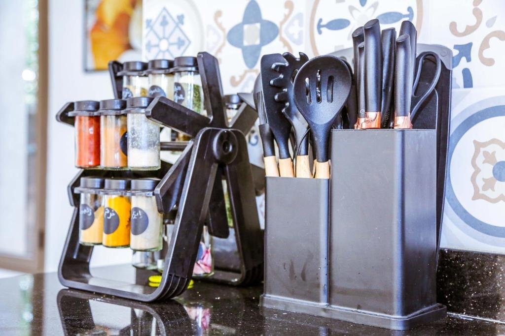 Cette villa climatisée comprend 3 chambres luxueuses, un salon élégant, une cuisine entièrement équipée avec réfrigérateur et machine à café, ainsi que 4 salles de bains modernes avec bidet et douche. Des serviettes et du linge de lit sont fournis pour votre confort.
